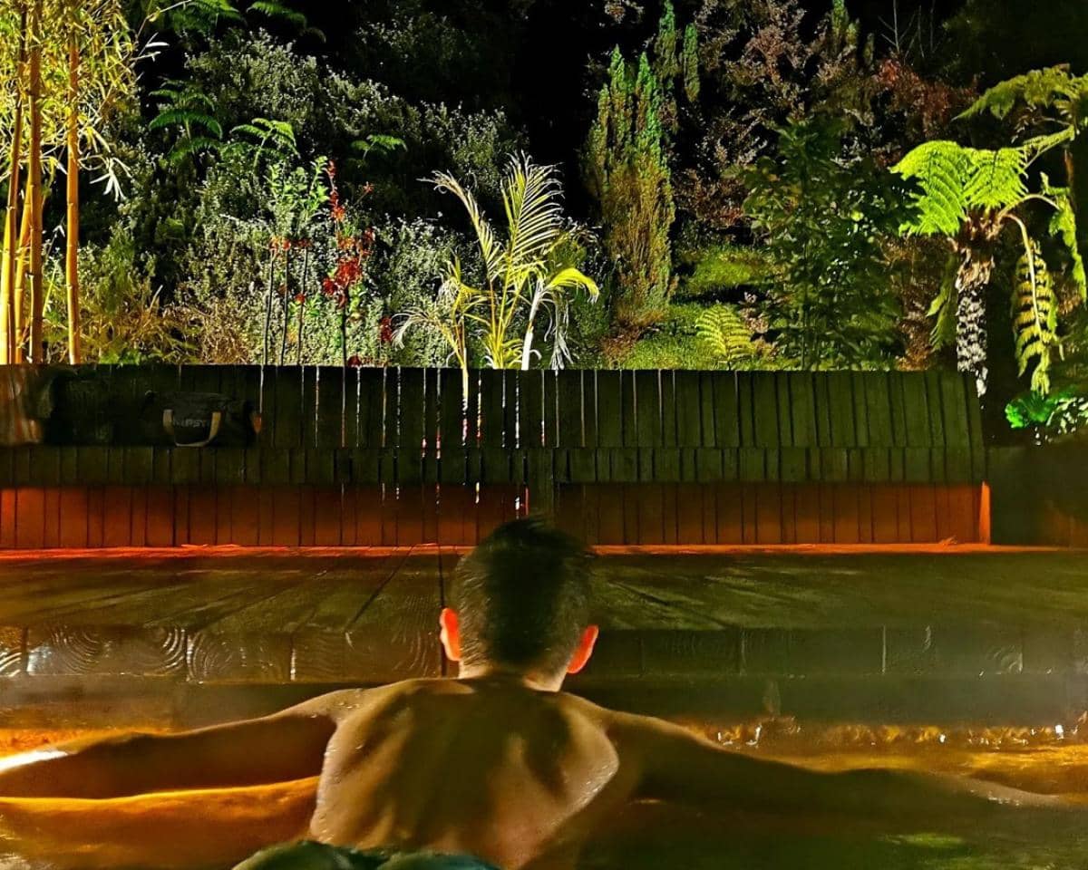 The legendary Poça da Dona Beija becomes your intimate haven: mineral-rich thermal waters steaming gently under a canopy of stars, surrounded by lush tropical gardens. Feel the stress melt away as you sink into the warm pools, hand in hand or simply embracing serenity. The gentle glow of the night, the soothing sounds of bubbling water, and the soft mist rising around you create a romantic and unforgettable atmosphere.